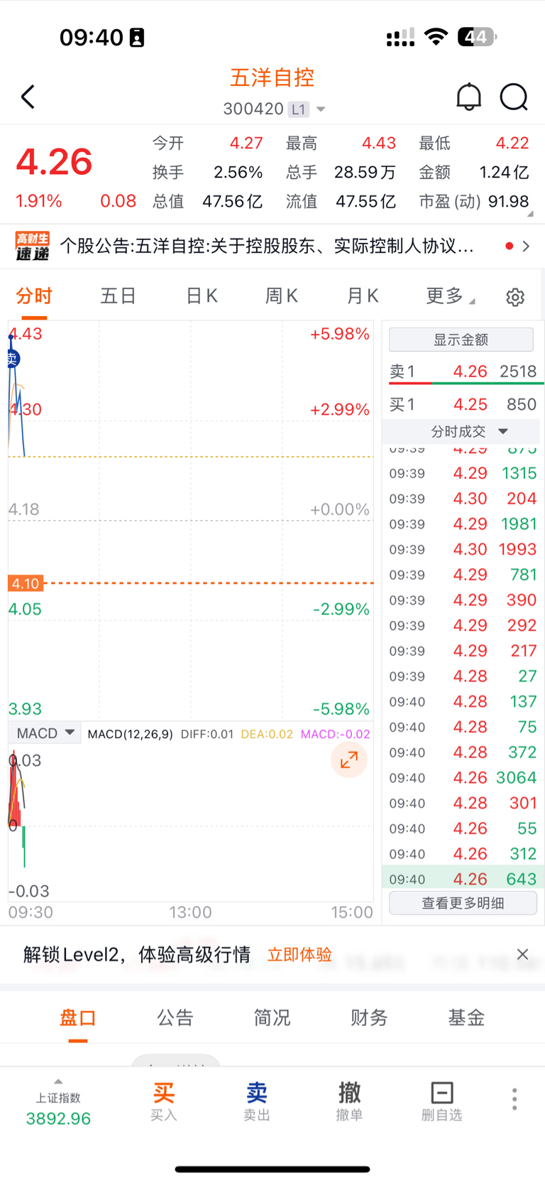 $五洋自控(SZ300420)$ 留下的兄弟好运