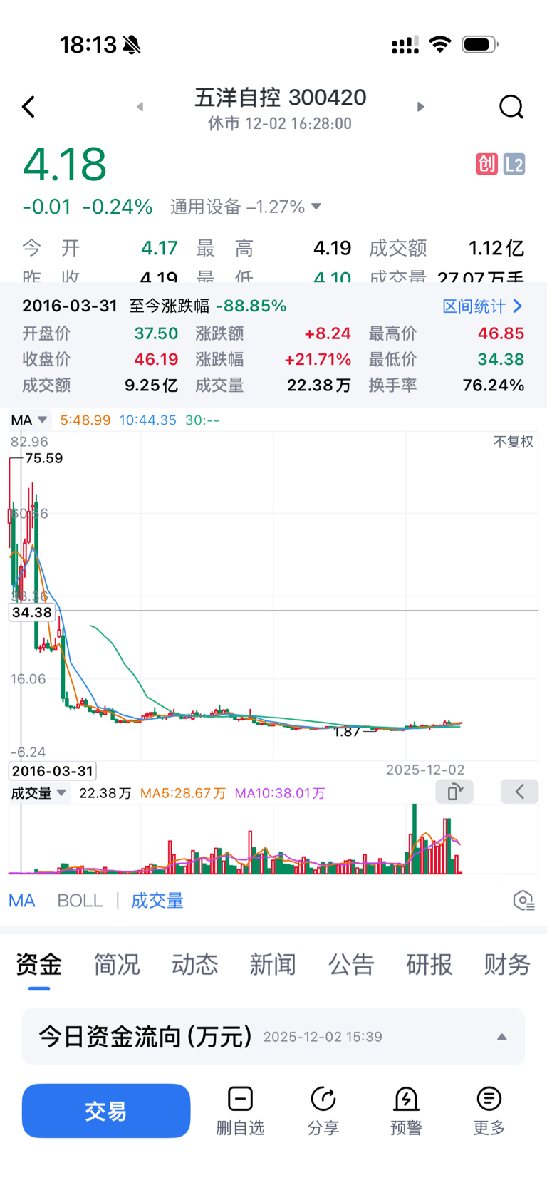 $五洋自控(SZ300420)$ 打个比方刚买好房子刚过完户,之后就是请设计公司设计装潢之后再装修住人,哪有这么快拉升?耐心持有吧,快的话三个月,慢的话六到九个月都合理
