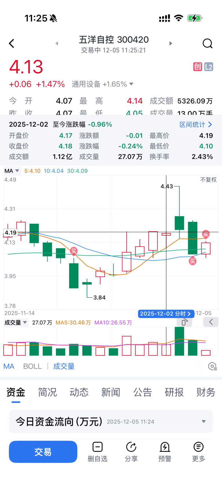 $五洋自控(SZ300420)$ 一直在买买买,接着就是等等等