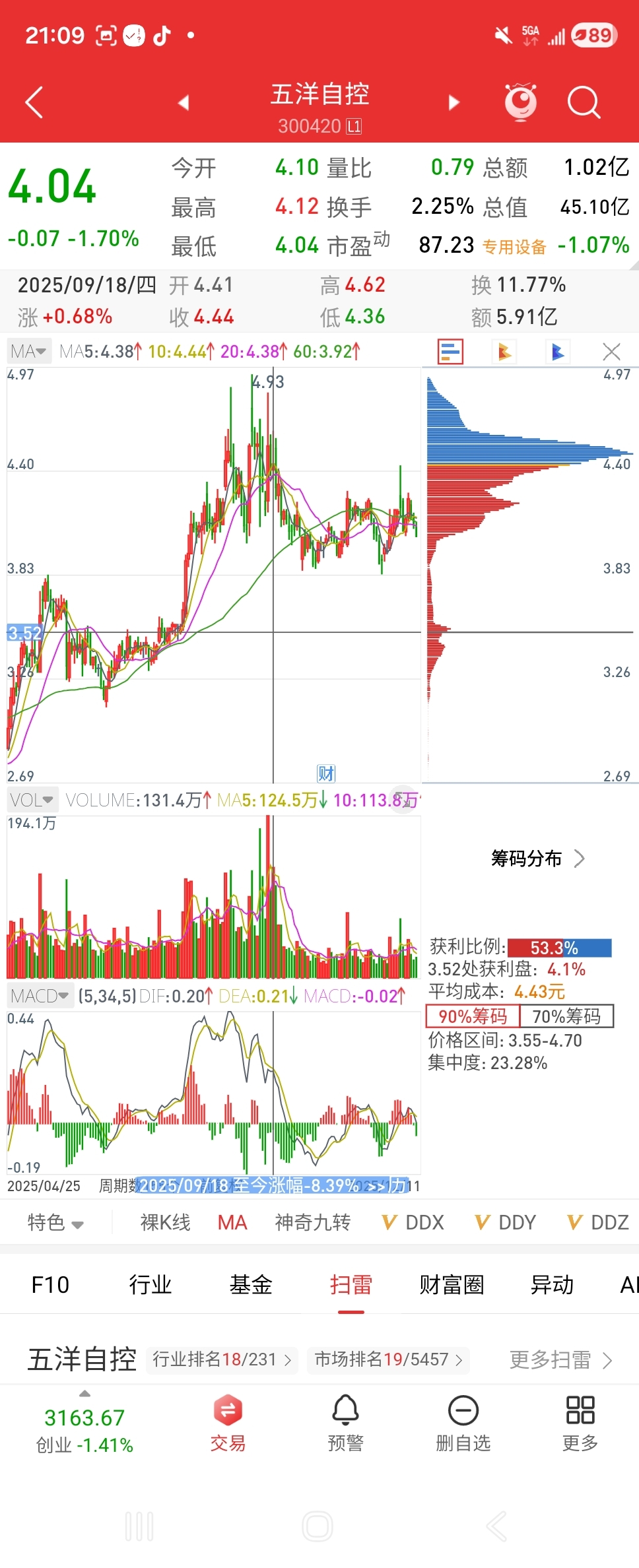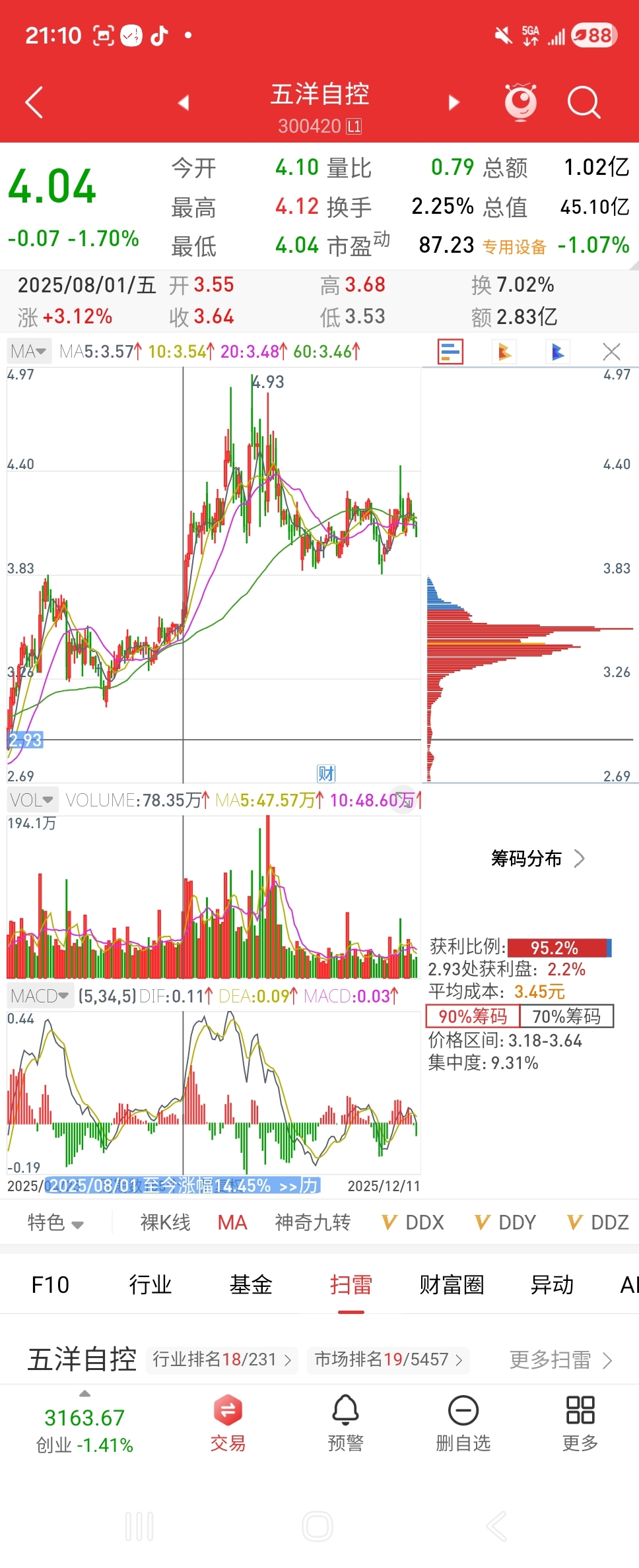 三张主力筹码,3.5元赚钱的都跑了。新主力成本在4.10左右主要看拿够筹码了没有