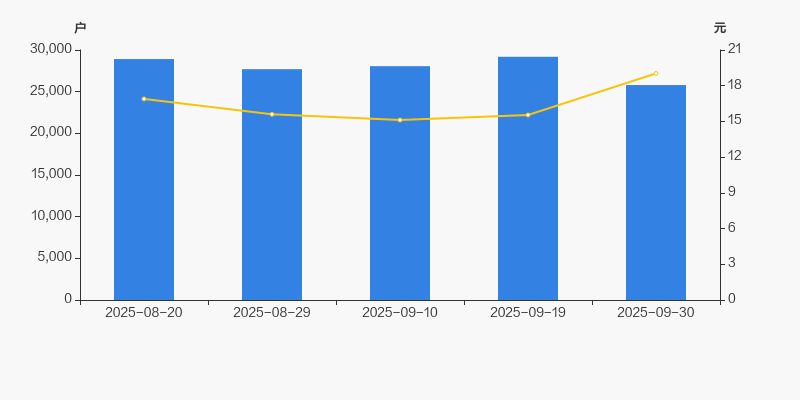 2025年8月20日至今,公司股东户数显著下降,区间跌幅为10.79%。2025年8月20日至2025年9月30日区间股价上涨12.67%。