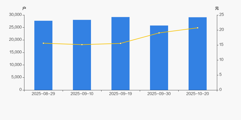 2025年8月29日至今,公司股东户数有所增长,区间涨幅为5.05%。2025年8月29日至2025年10月20日区间股价上涨32.88%。