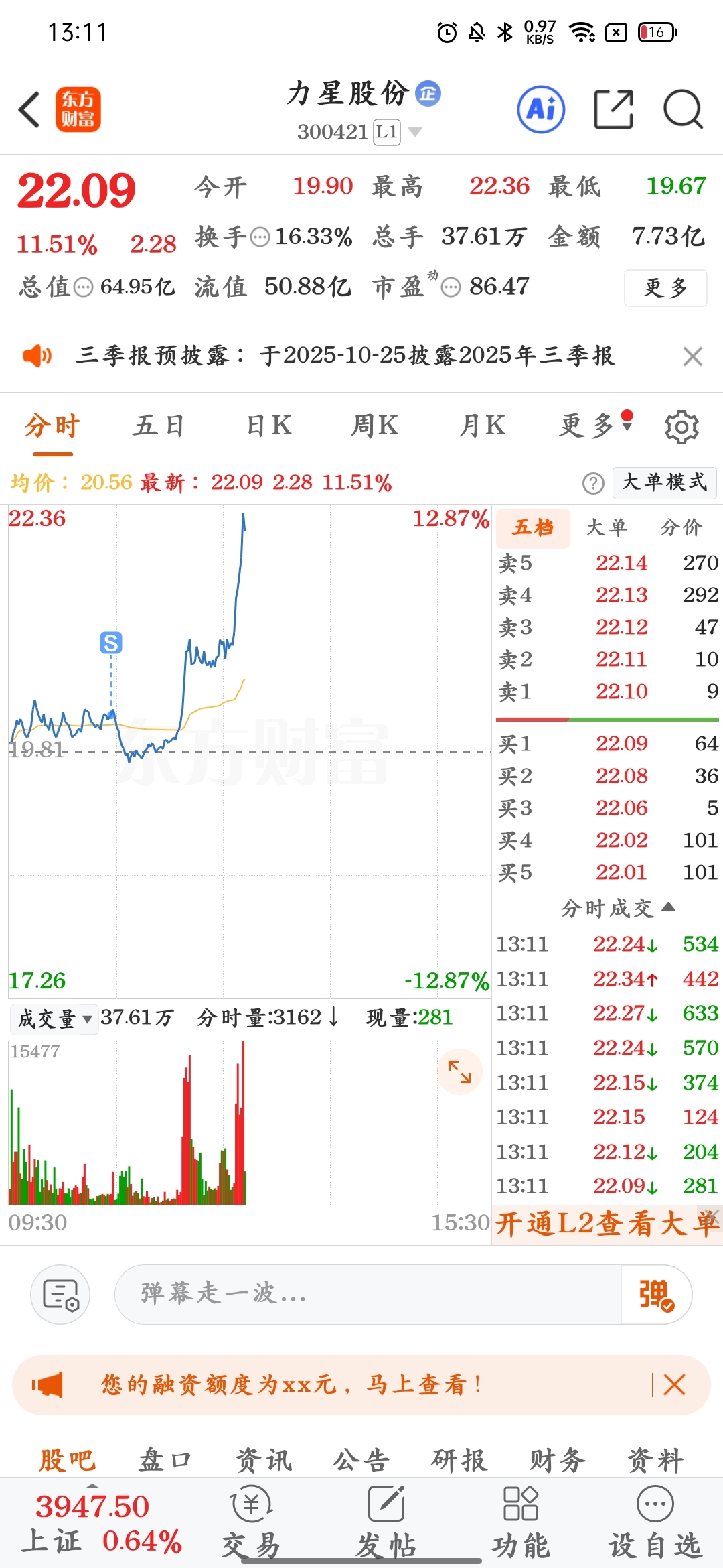 $力星股份(SZ300421)$ 吃了蚂蚁一样