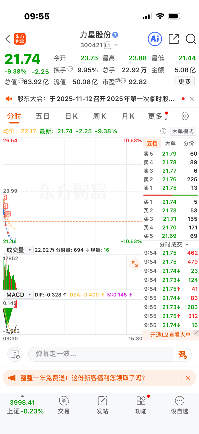 $力星股份(SZ300421)$ 还以为跌点就差不多了,没想到啊,主力你真的很狗