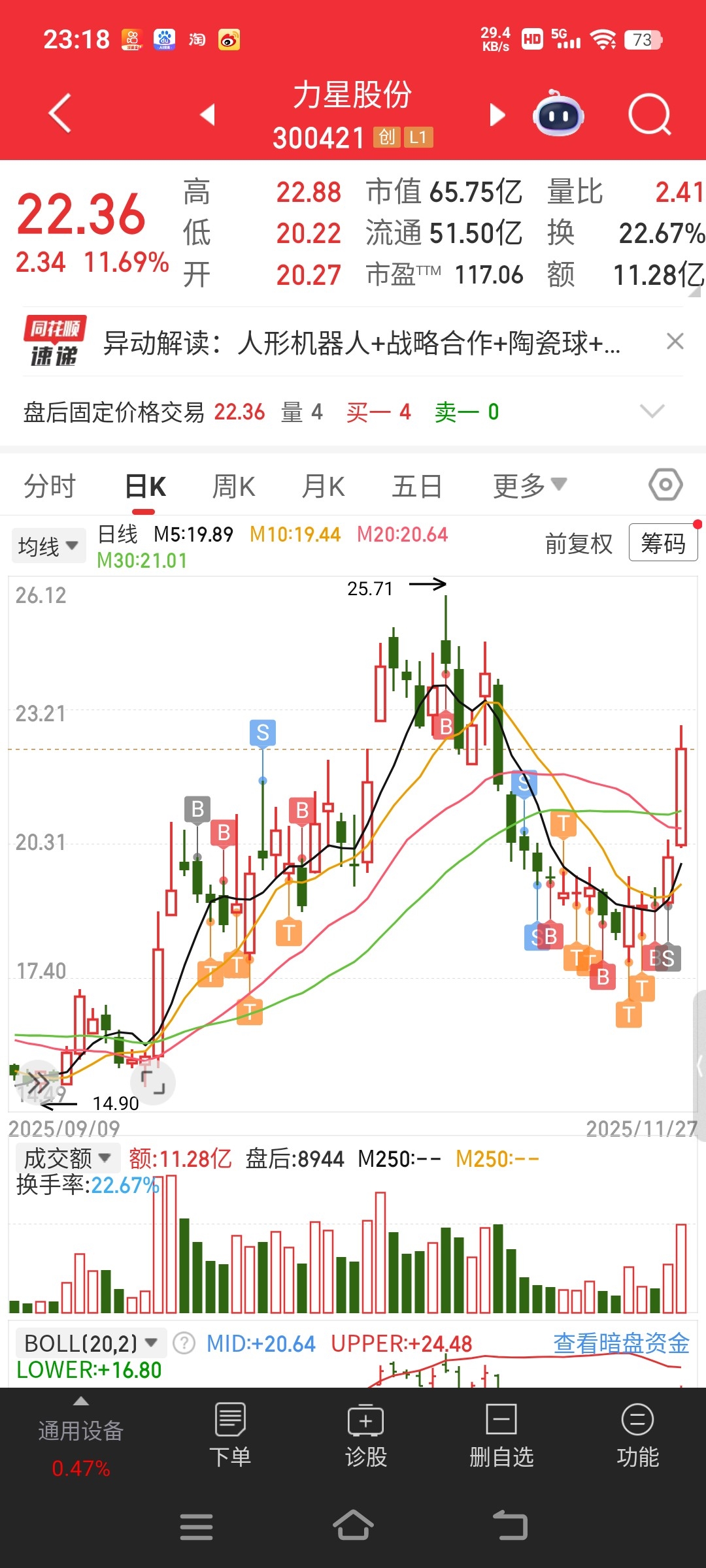 $力星股份(SZ300421)$ 昨天下午家里人说今天需要大笔资金,我忍痛清仓力星,留了几十手景峰,结果今天资金又不需要了。我这是啥财运啊,算了,年前收手,祝持有力星股份的亲们财源滚滚
