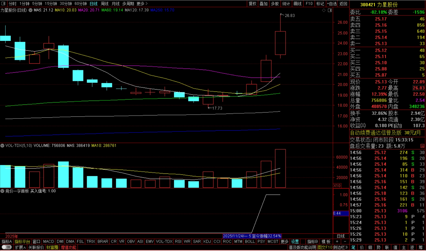 $力星股份(SZ300421)$ 龙抬头竞价首板王战法,做股票不要追高更不要打板,想实现稳定复利就要做低位竞价首板,龙抬头竞价首板王选股软件,开盘前竞价选股不做马后炮,买在低位3个点左右,博当天或者次日溢价甚至首板涨停!龙抬头竞价首板王专门抓20厘米首板涨停!