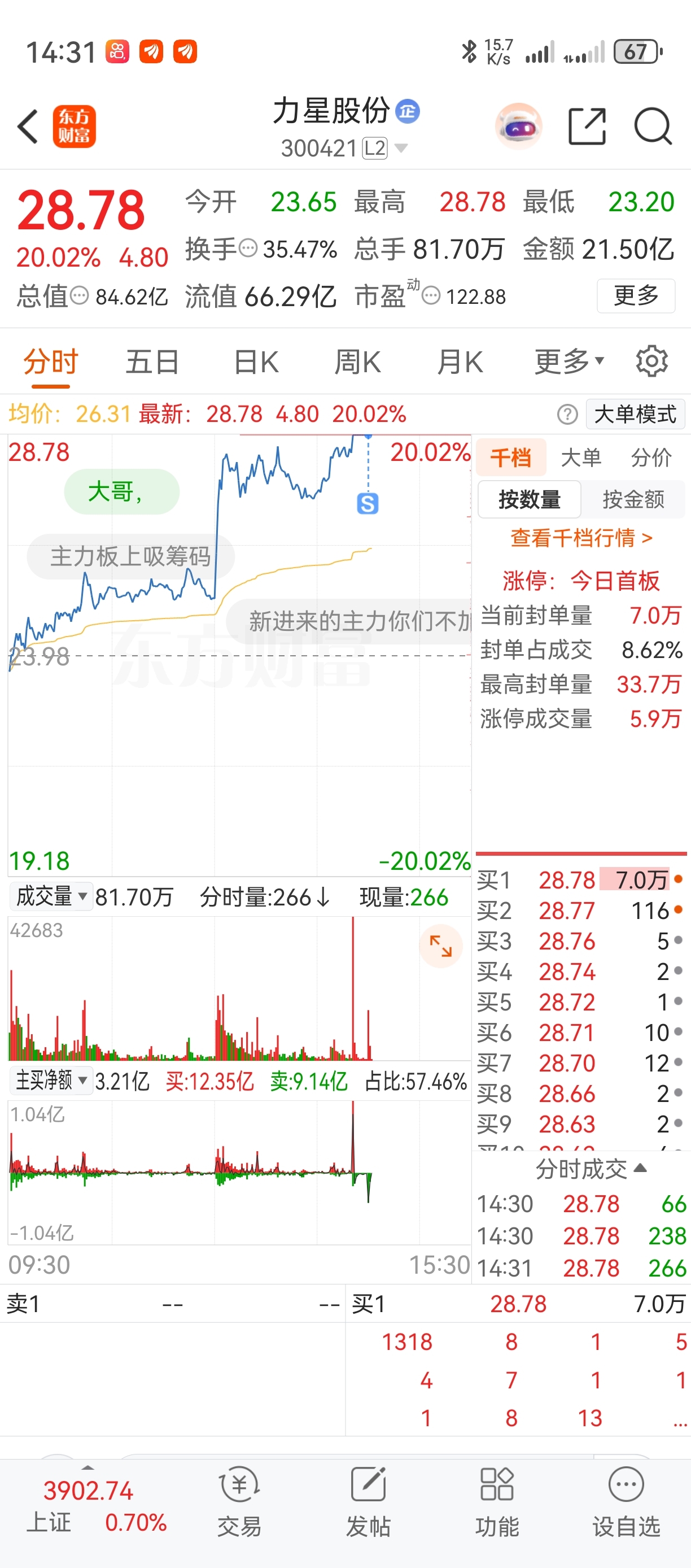 $力星股份(SZ300421)$ 走了,不去想周一溢价了