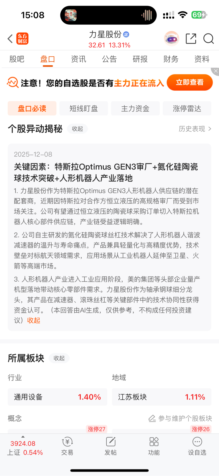 $力星股份(SZ300421)$ 力星陶瓷球高端,唯一性,垄断性,特斯拉机器人要用,国产的也会用,航天也需求,真是潜力无限,因这个逻辑锁仓一周了没动,看到80先