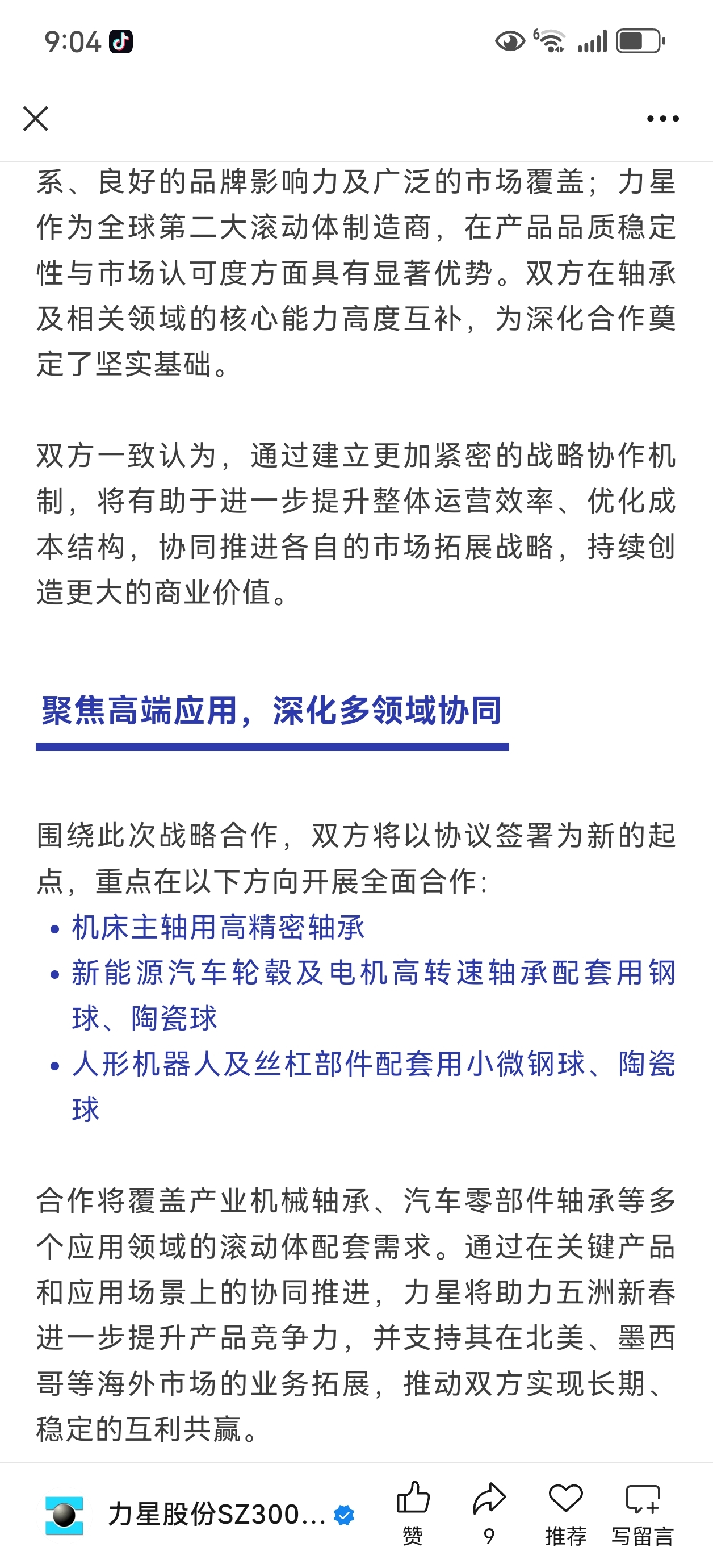 力洲和五星战略合作陶瓷球,这说明陶瓷球已经是确定性事情!!