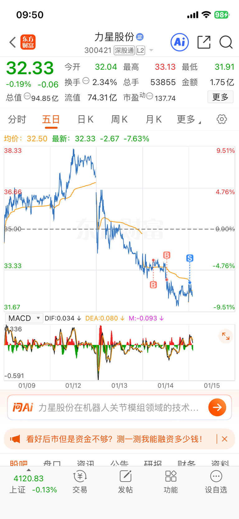 $力星股份(SZ300421)$ 亏了2个多点,割了