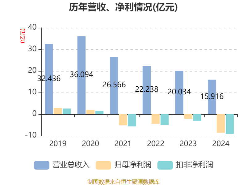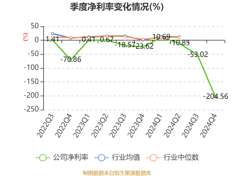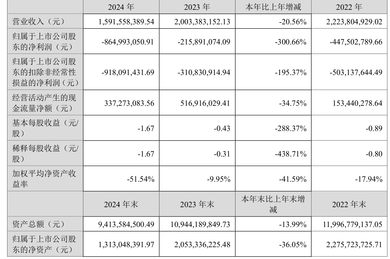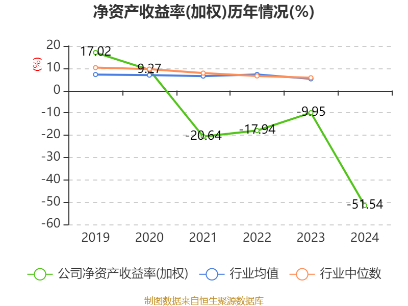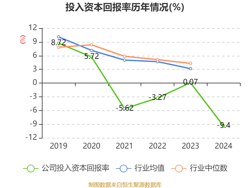 数据显示,2024年公司加权平均净资产收益率为-51.54%,较上年同期下降41.59个百分点。公司2024年投入资本回报率为-9.4%,较上年同期下降9.47个百分点。