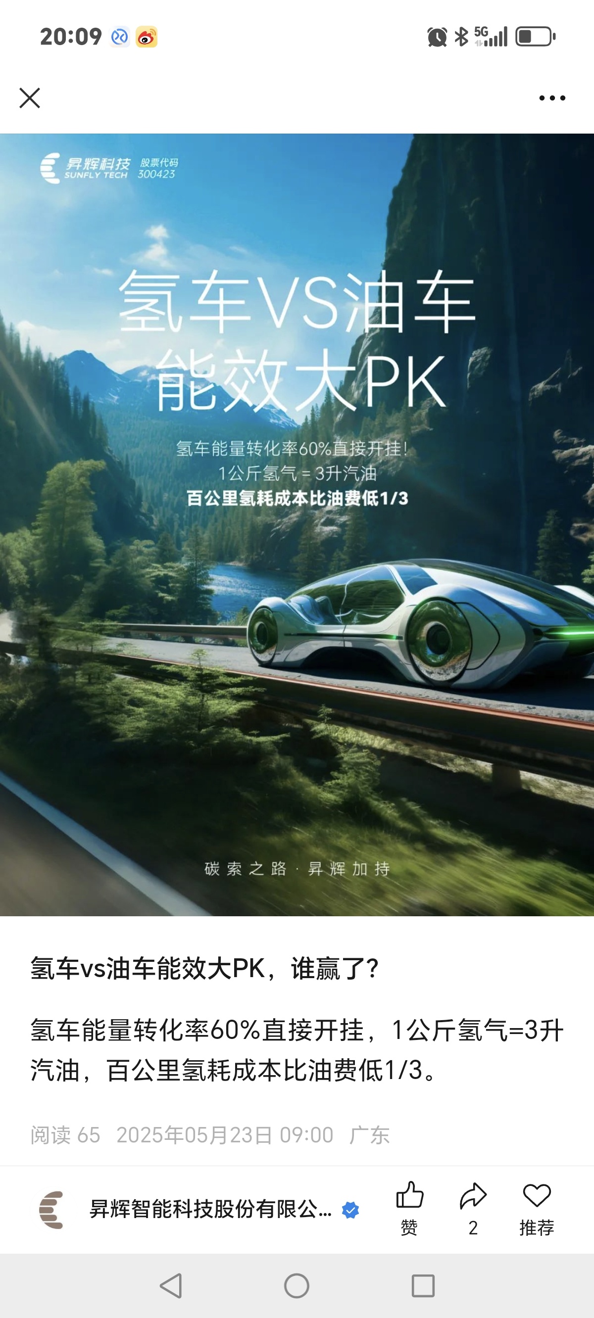 $昇辉科技(SZ300423)$ 昇辉科技的氢能完胜油车,这还要问?一年级都能懂。