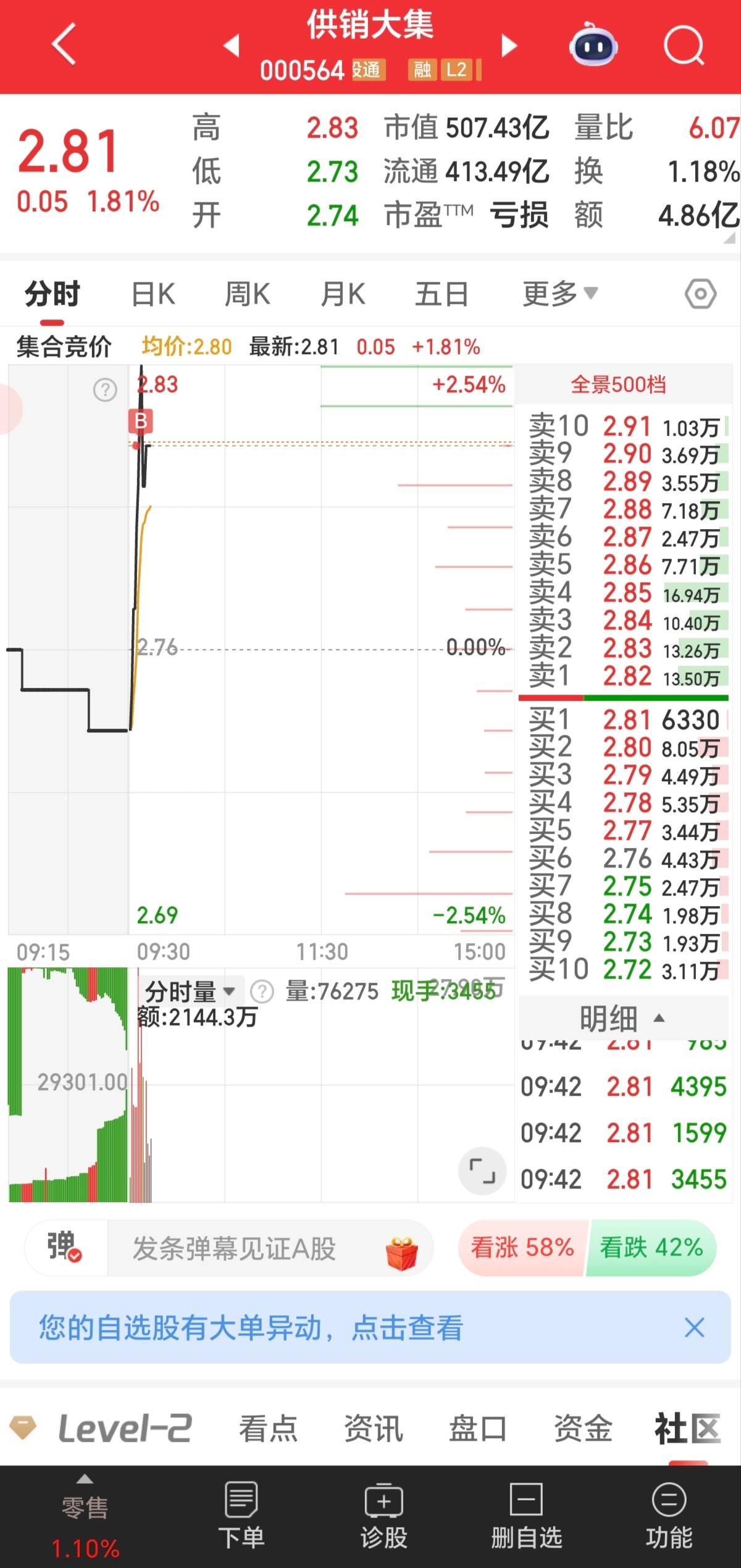 $供销大集(000564)$ 对不起!对不起!对不起!是我拖累了大集,三年了反反复复进去又出来,一直到这次三个月进进出出,在外面没赚到钱,到处都是妖股都不敢进去,而大集却从一开始的2.28一直t到现在2.82,相当于倒贴了三个涨停,不见了20万股,今天又追进来了,如果今天不涨停,天台见?!