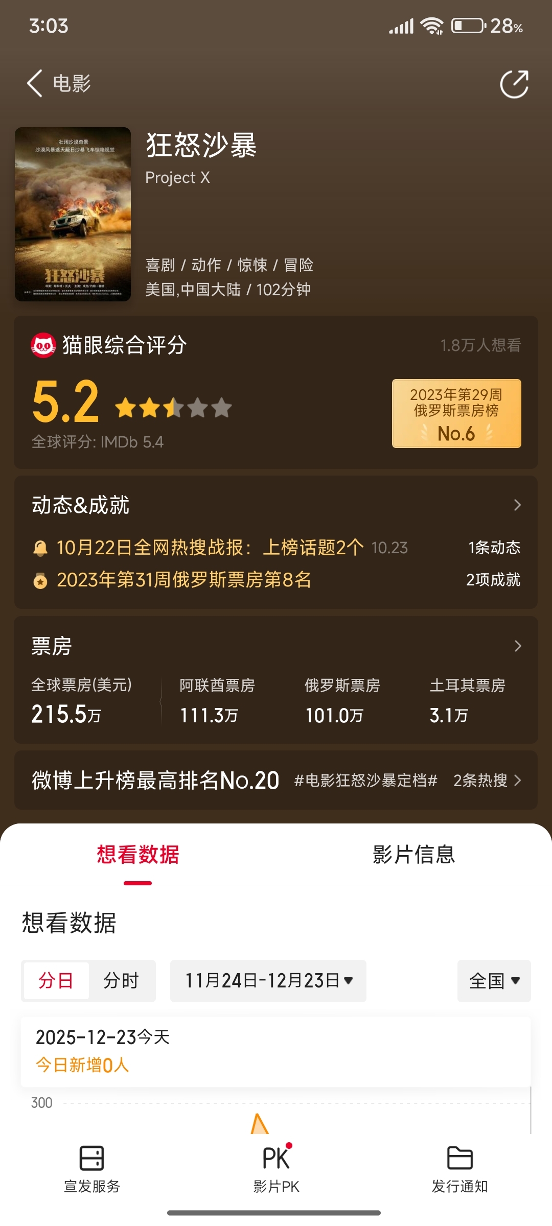 $华智数媒(SZ300426)$ 让大家看看投资5亿的狂怒沙暴全球票房多少,212万美金
