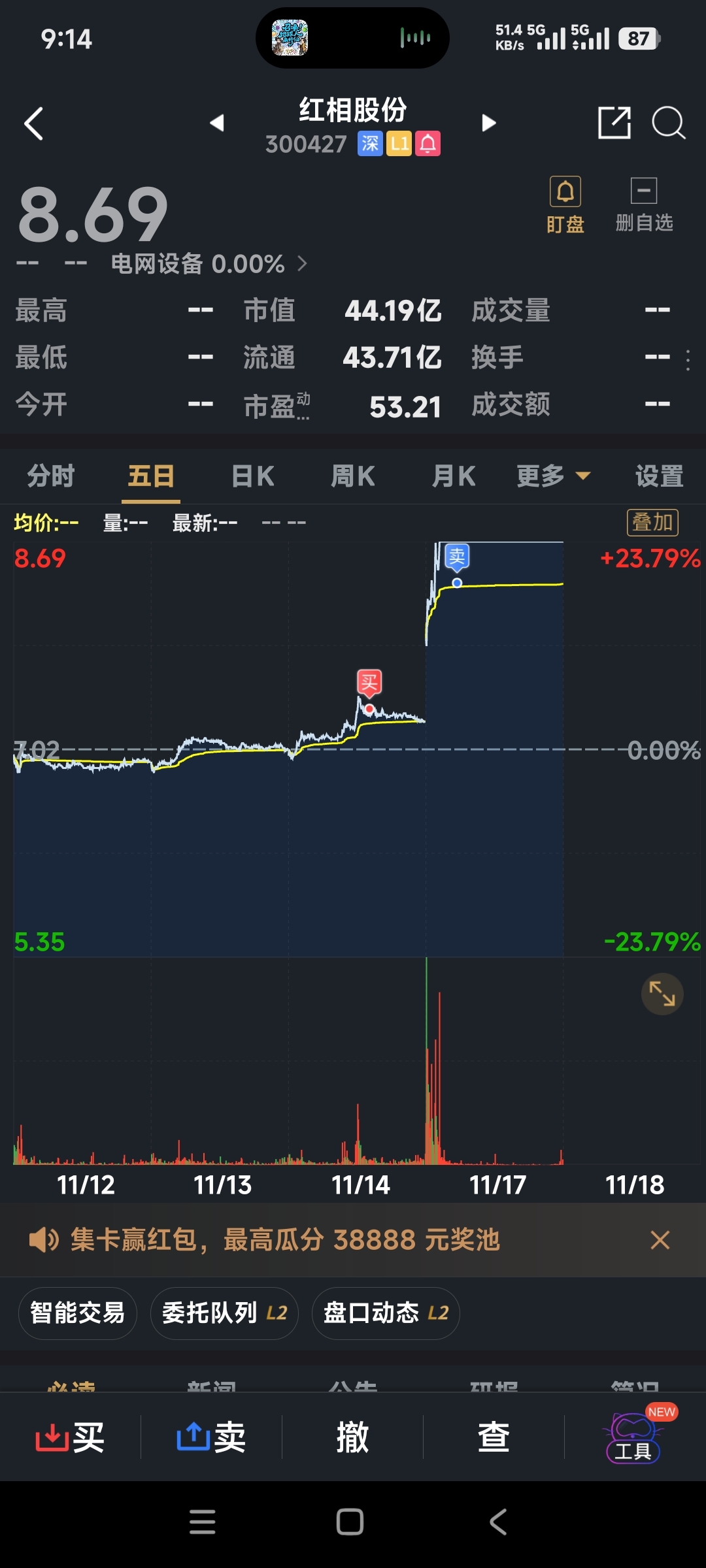 $红相股份(SZ300427)$ 拍大腿,看你们吃肉……
