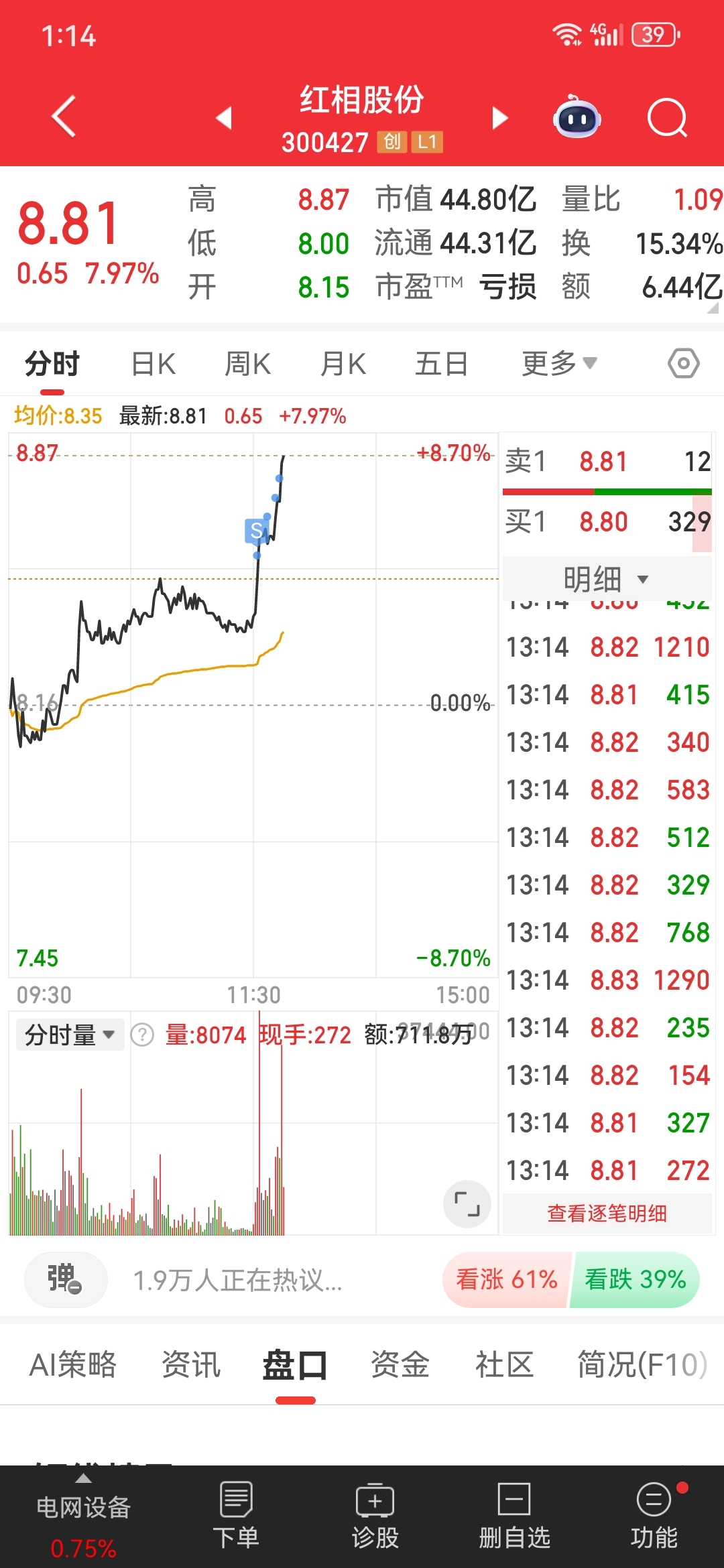 $红相股份(SZ300427)$ 终于卖了,感谢主力不杀之恩