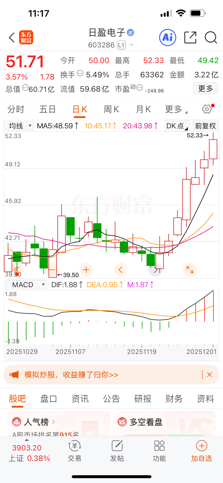 $红相股份(SZ300427)$ 军工走弱是因为日盈,等道歉了就买不进去了