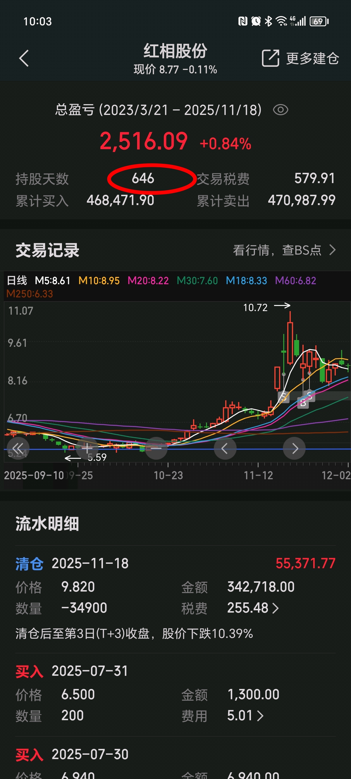 三十多万的仓位,最多的时候去了二十多个,硬生生扛下来了,去年国庆摘帽大涨,没出,结果又熬了一年,真的太难了,也是很感谢大佬们给机会让我回本跑了,再也不敢贪心了,回本卖出的那一刻,小手都在颤抖