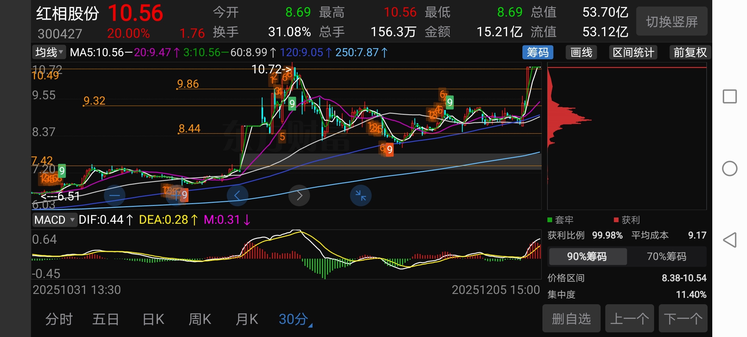 周一剧本如下,高开回调给10块,然后上涨两天,上升中出货
