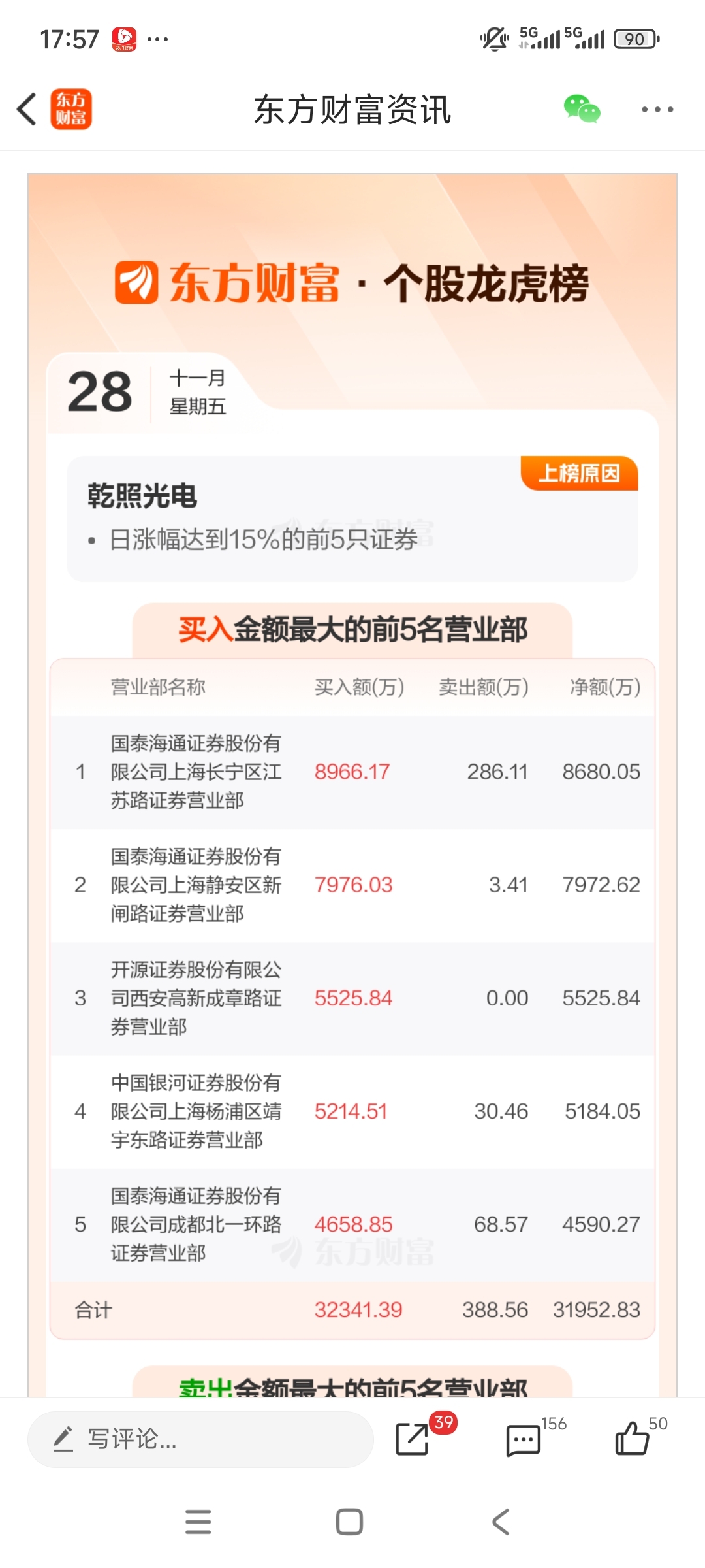 今天的龙虎榜前几天跟乾照光电的如出一辙啊