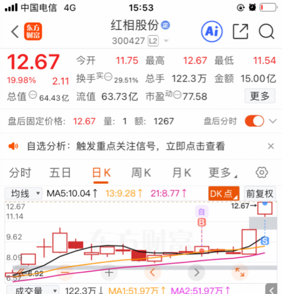 我发现我就不适合看盘,一看盘就卖飞,好几次了,不过还是感谢!