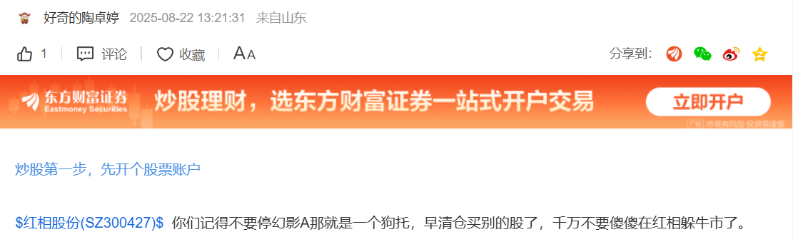 温馨提示: 1.根据《证券法》规定,禁止编造、传播虚假信息或者误导性信息,扰乱证券市场;2.用户在本社区发表的所有资料、言论等仅代表个人观点,与本网站立场无关,不对您构成任何投资建议。用户应基于自己的独立判断,自行决定证券投资并承担相应风险。《东方财富社区管理规定》