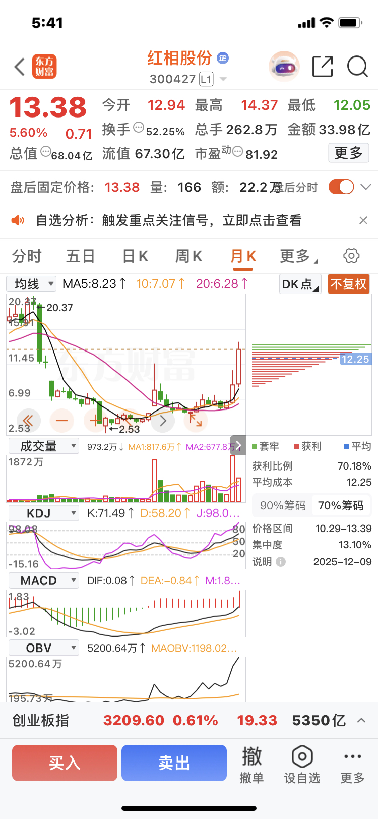 $红相股份(SZ300427)$ 如果不是“两岸”关系化,则行情大概率不会出现第2波;也许第1波的“高点”(202410)11.56需几年才能化解;既然选择了向上突破,那么“后高”至少要让其翻个番了!差不多就是11.56*200%=23.12(我们不妨留个余地,偏保守点儿估计……)