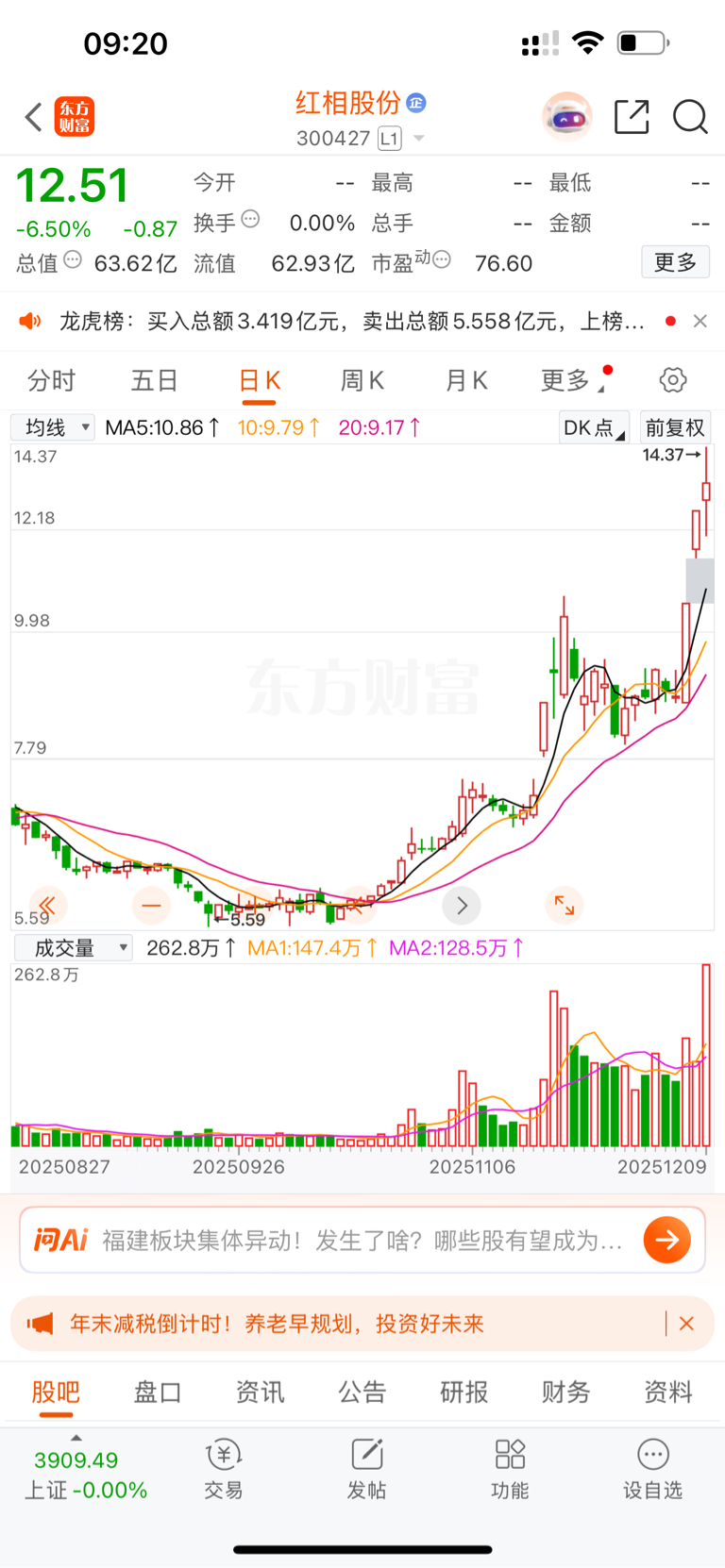 $红相股份(SZ300427)$ 到顶了,小数点加起来整数的,就是对顶数字,看来昨天进的人,今天都会被埋