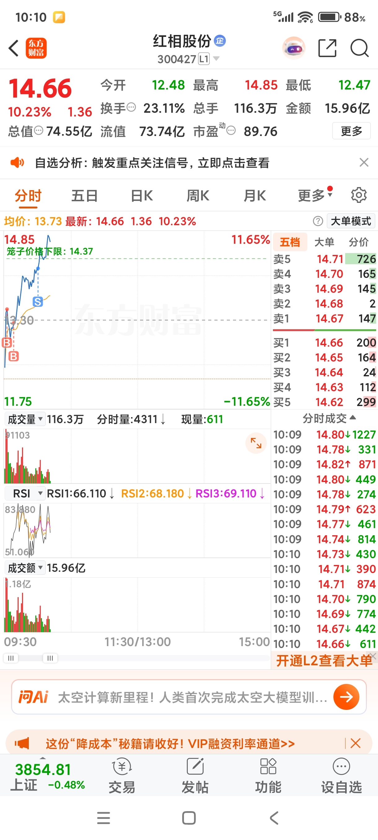 $红相股份(SZ300427)$ 没有T好