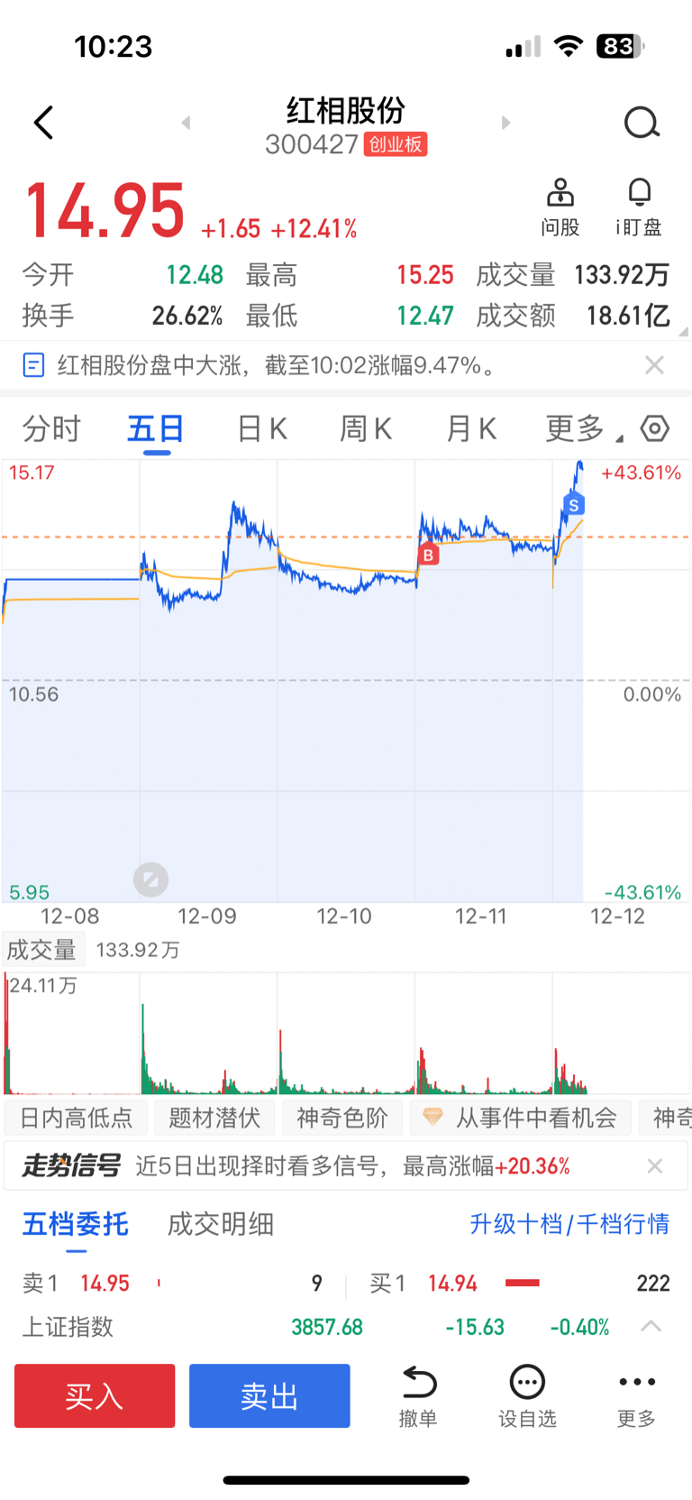 $红相股份(SZ300427)$ 卖飞了吗兄弟们