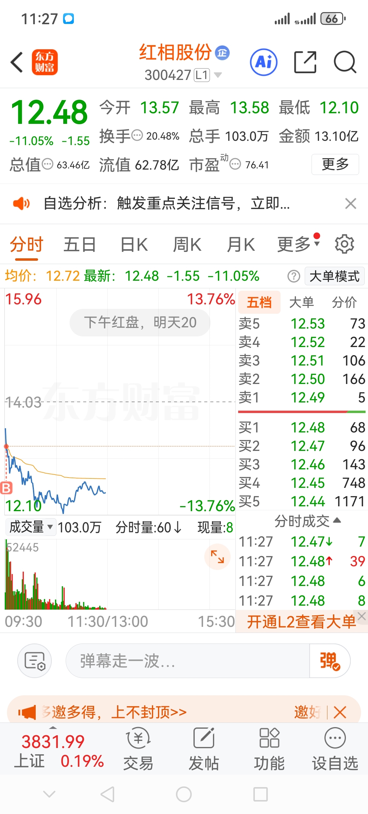 $红相股份(SZ300427)$ 使劲跌吧,我就是高位接盘侠