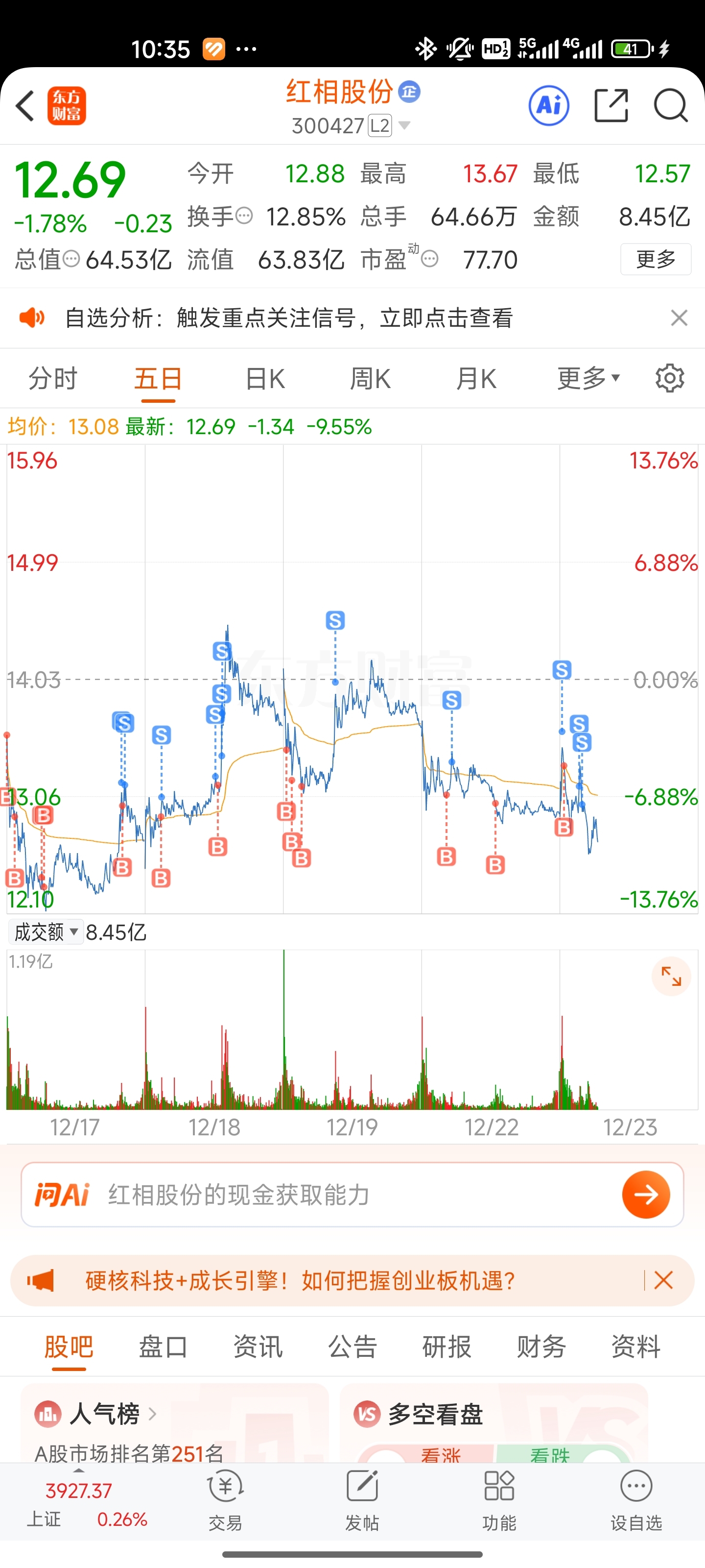 $红相股份(SZ300427)$ 今天成本全部卖出了只留了利润在里面,感谢红相给我26个点发利润