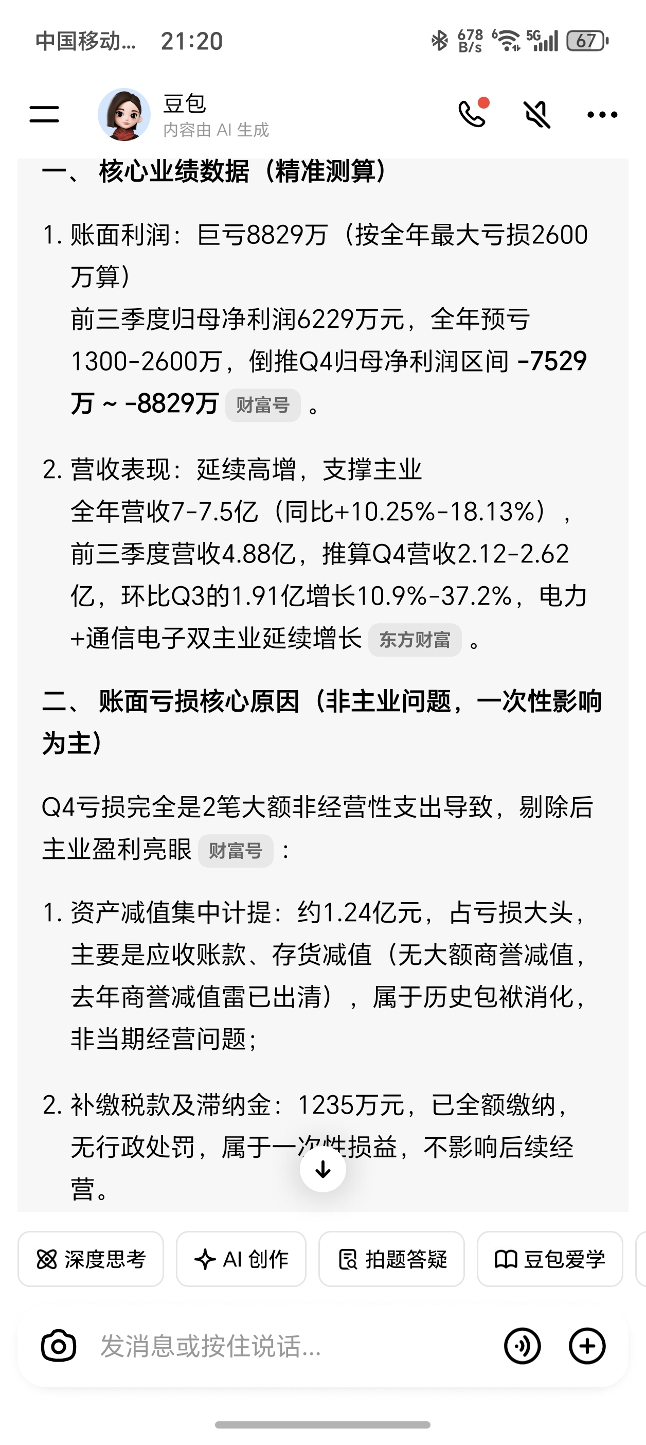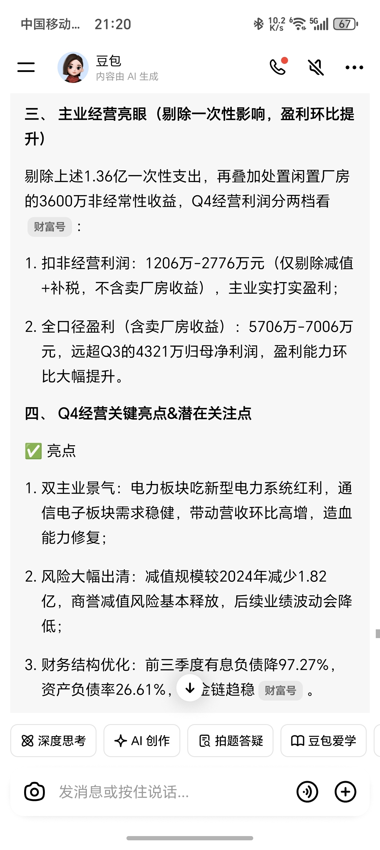 让ai拆分的第四季度的经营数据,总的来说经营情况还是可以的,但是,股价涨不涨就难