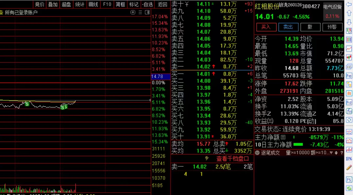 $红相股份(SZ300427)$ 终归还是把我的三成仓位洗出局,还好继续加仓AI到六成龙头天地在线下周但愿带我飞。格局了15天红相股份太让人失望,或许你本为杂毛。