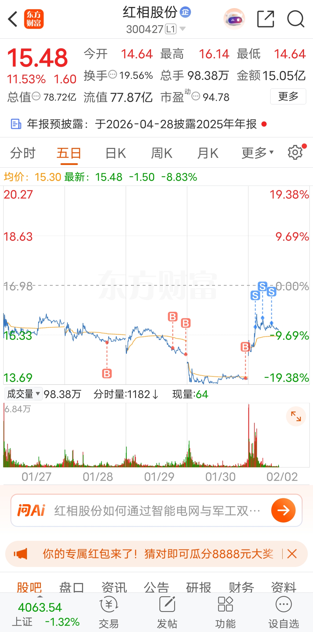 $红相股份(SZ300427)$ 加了几天的仓,妥妥滴大韭菜