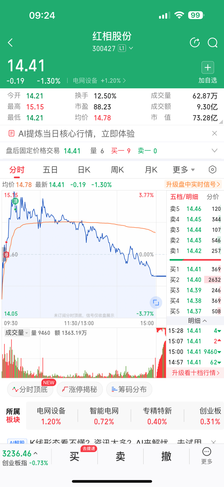 $红相股份(SZ300427)$ 心态崩了,我都是看有板块效应的买点,为啥都是下午走弱,30日线为啥没有反弹,之前也是龙二,真的想不通。