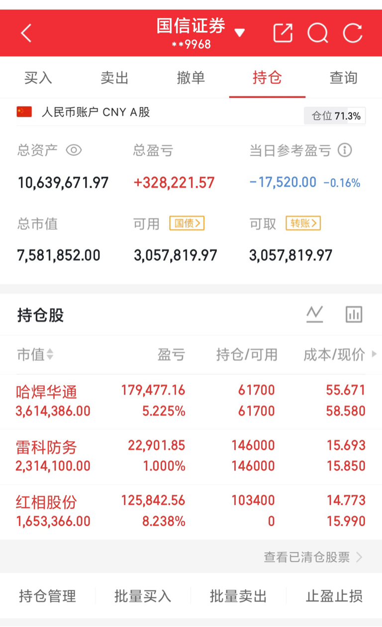 持有: $雷科防务(SZ002413)$ $哈焊华通(SZ301137)$