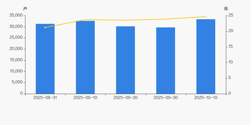 2025年8月31日至今,公司股东户数有所增长,区间涨幅为6.60%。2025年8月31日至2025年10月10日区间股价上涨16.41%。