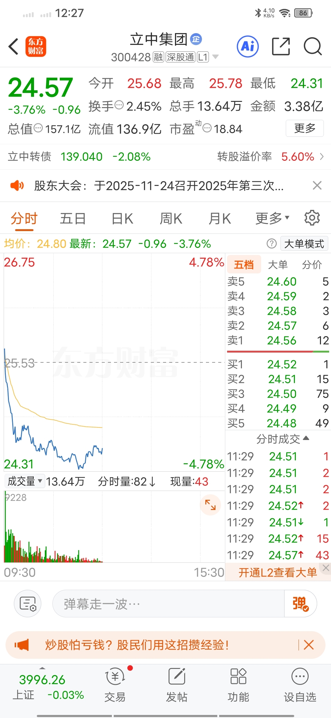 $立中集团(SZ300428)$ 午盘这个姿势看样是往上冲啊?哪家主力这么好心?看着散户不上车给机会让上车呢,可别不留神翻了车哦