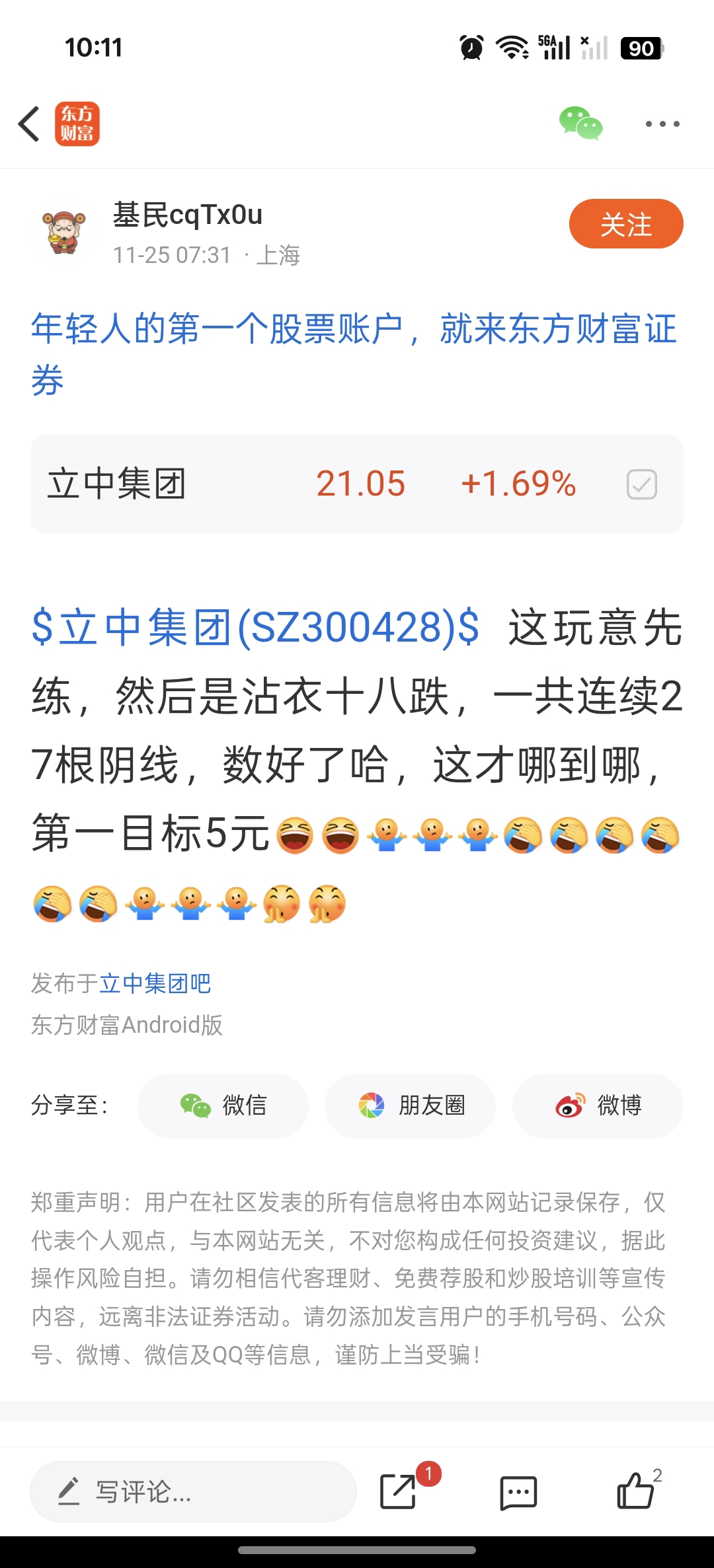温馨提示: 1.根据《证券法》规定,禁止编造、传播虚假信息或者误导性信息,扰乱证券市场;2.用户在本社区发表的所有资料、言论等仅代表个人观点,与本网站立场无关,不对您构成任何投资建议。用户应基于自己的独立判断,自行决定证券投资并承担相应风险。《东方财富社区管理规定》
