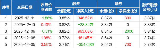 立中集团:融资净买入346.52万元,融资余额3.85亿元(12-11)