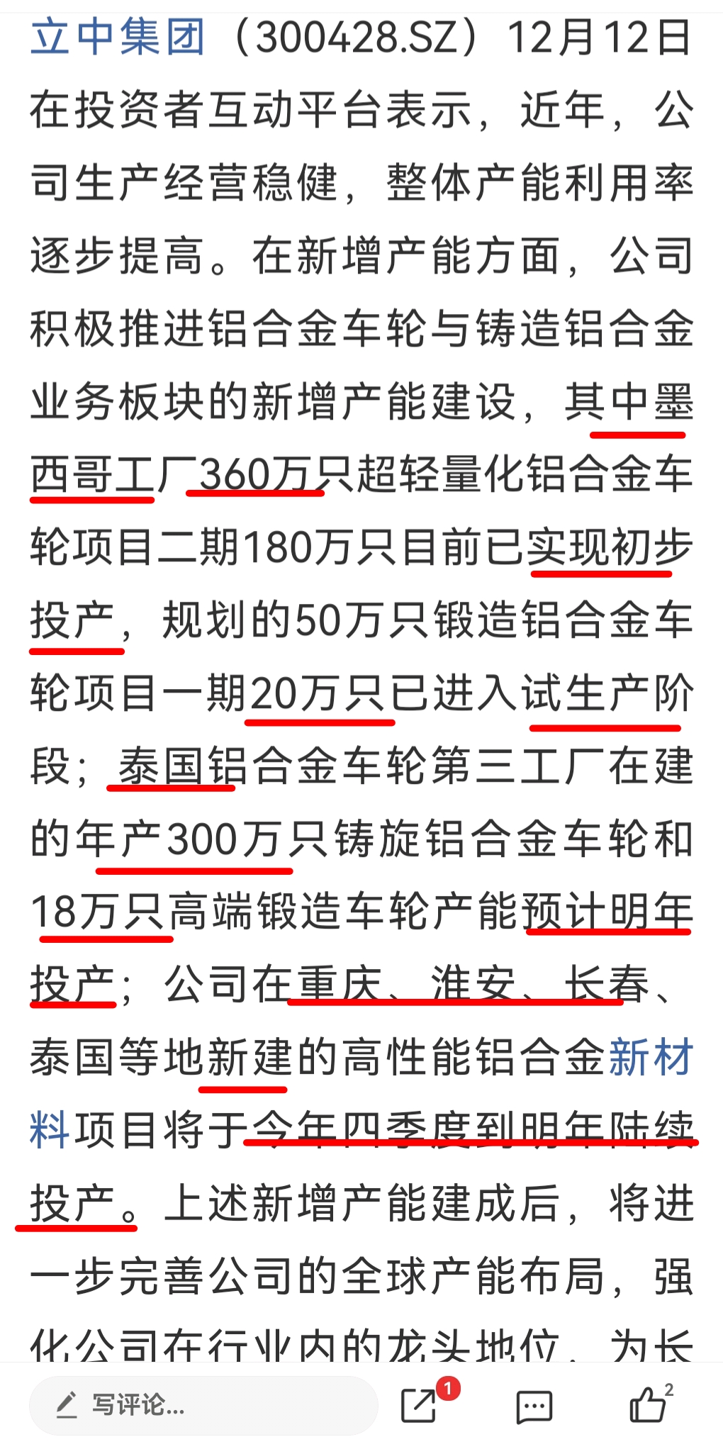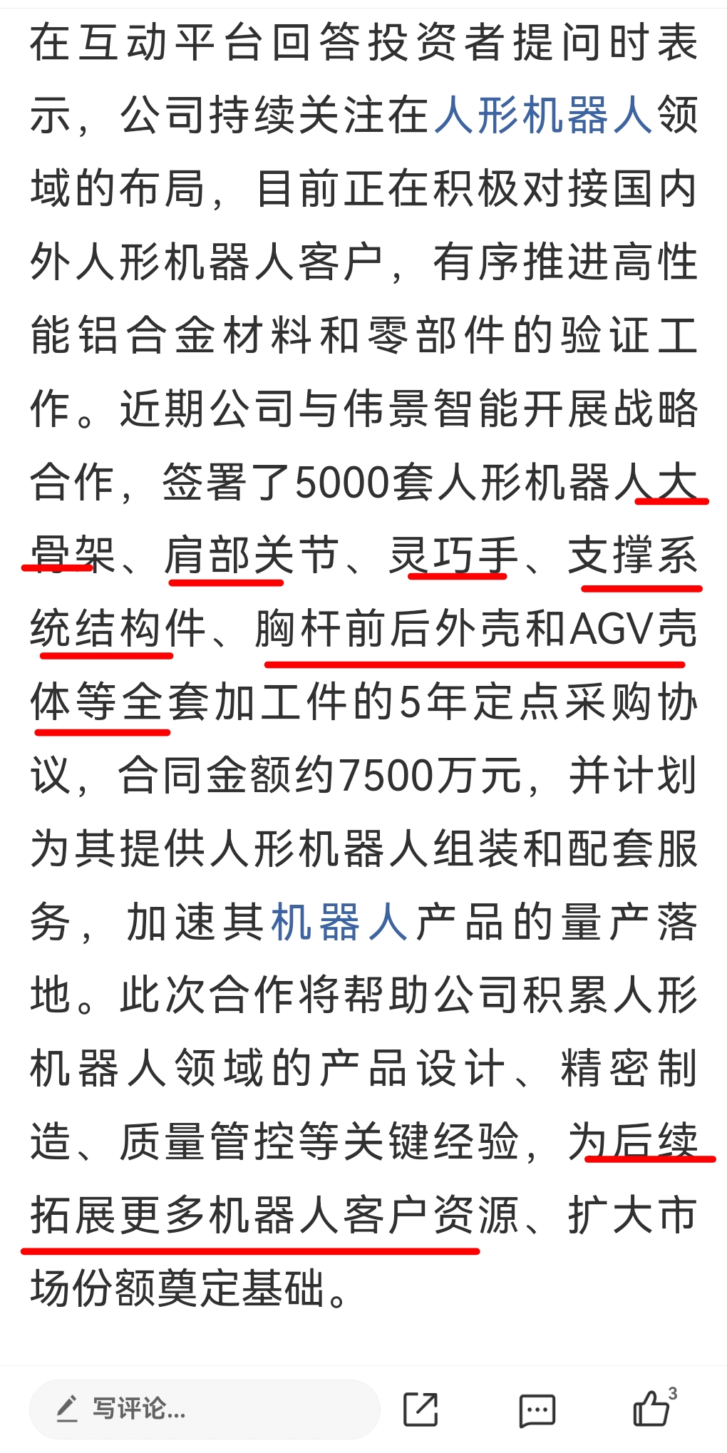 $立中集团(SZ300428)$ 22元的立中集团是大周期底部。亮点一:7500万/5000套=1.5万元/套,亮点二:为后续拓展其他机器人客户打基础(特斯拉已经是公司汽车零部件客户,会否存在近水楼台先得月?)亮点三:汽配领域业务正在放量,未来这块可以带来确定性的利润增量(一体化压铸业行业领先),亮点四:固态电池材料有实质性产出,