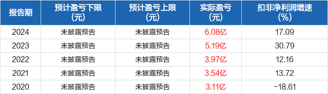 近5年扣非净利润预测情况