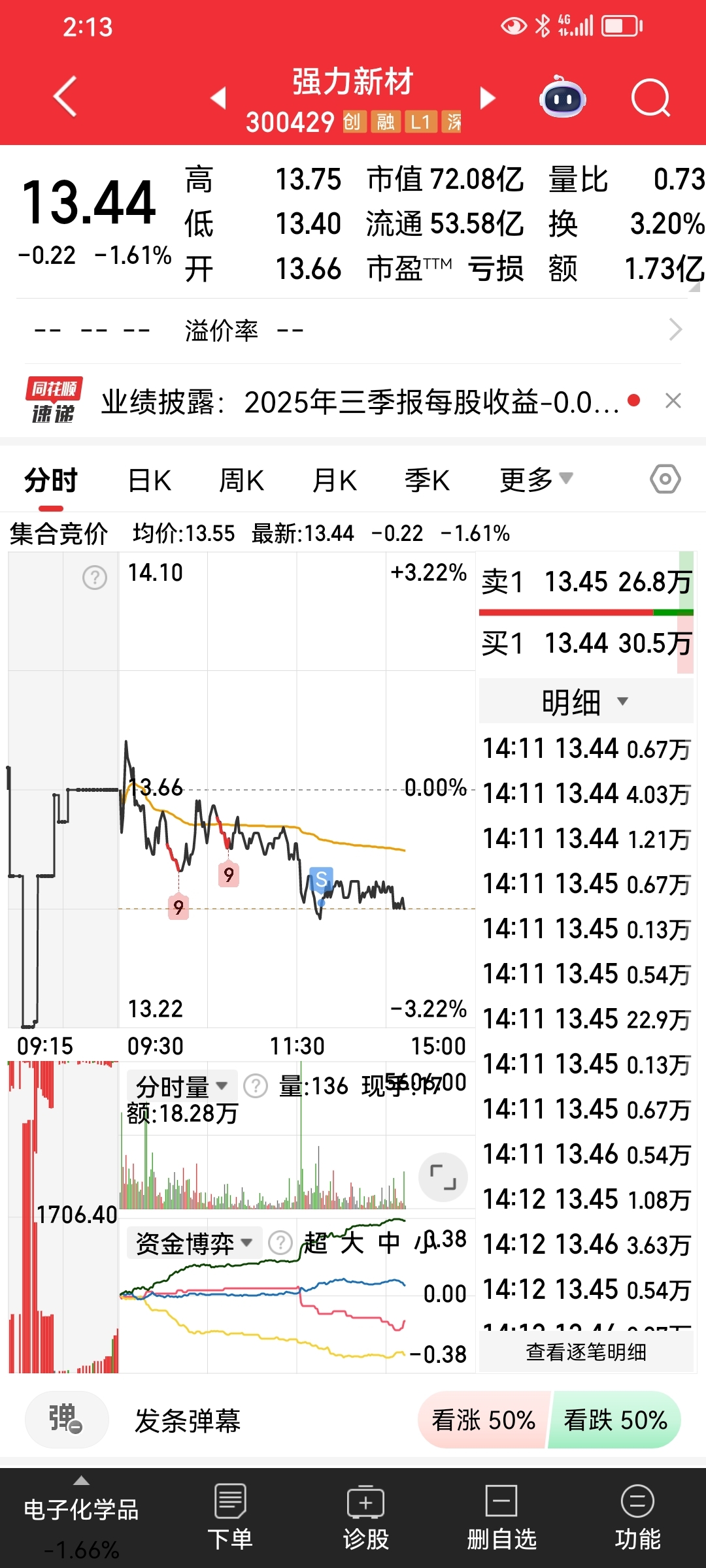 $强力新材(SZ300429)$ 上午出逃一千四百多,下午更出逃三千多,减持和清仓,加仓的锂电还赚一个涨停,