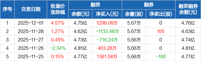 强力新材:融资净买入1298.08万元,融资余额4.75亿元(12-01)