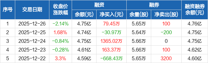 强力新材:融资净买入79.45万元,融资余额4.75亿元(12-26)