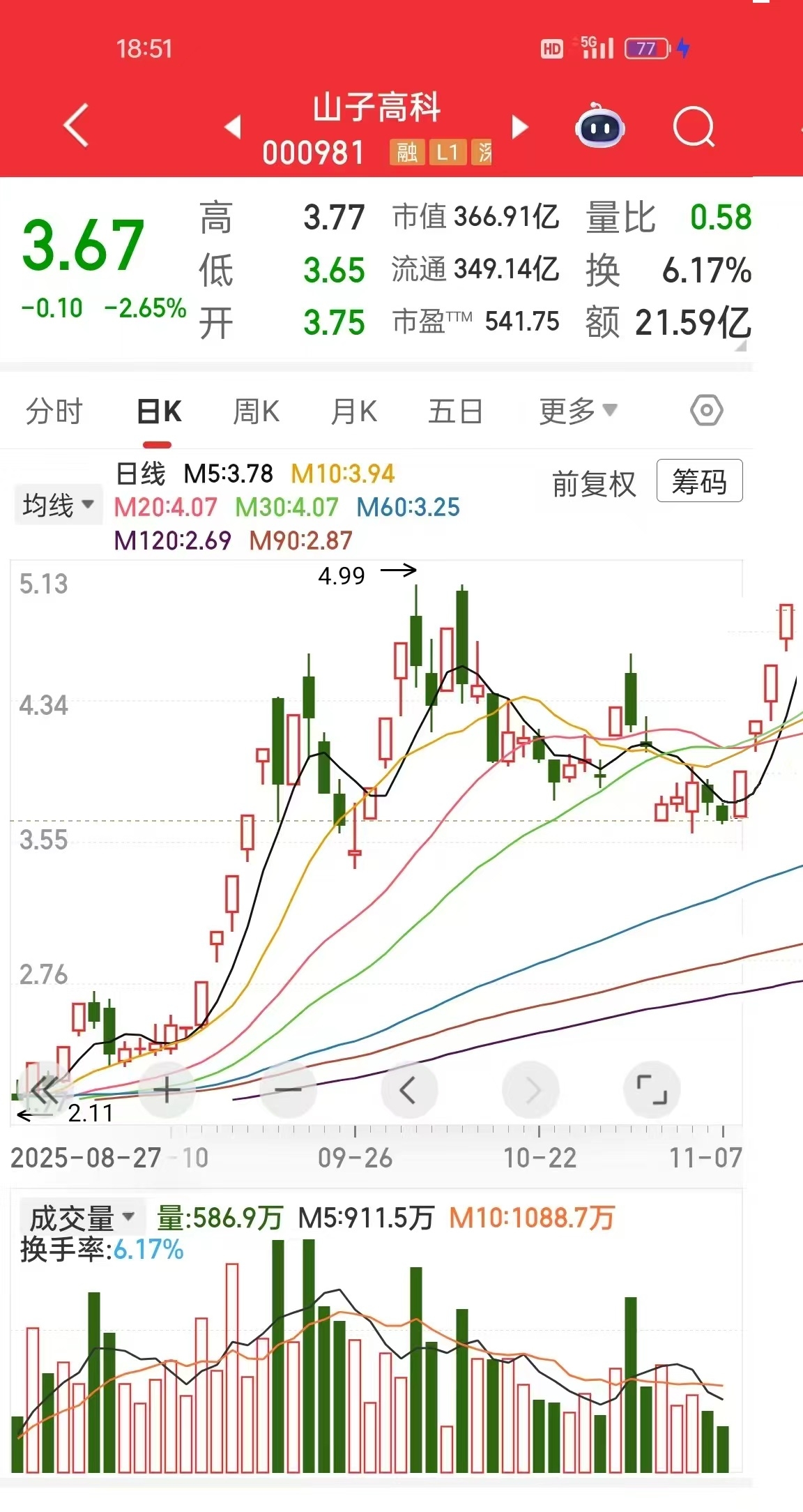 2025年11月9日,记录本周山子高科操作,山子高科,我目前动用全部可用资金,满