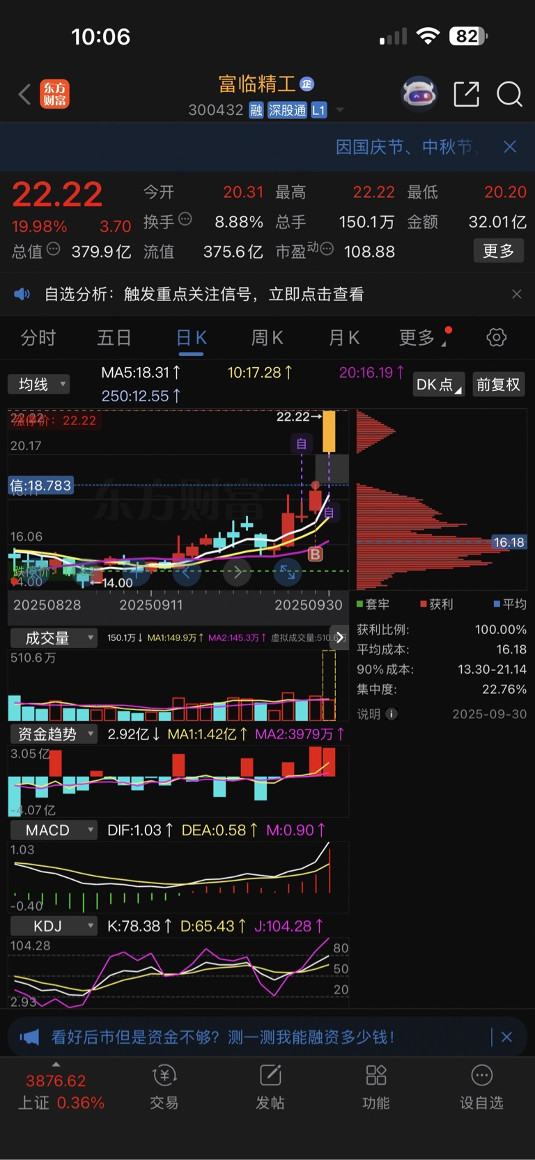 $富临精工(SZ300432)$ 昨天上午买的,今天吃大肉