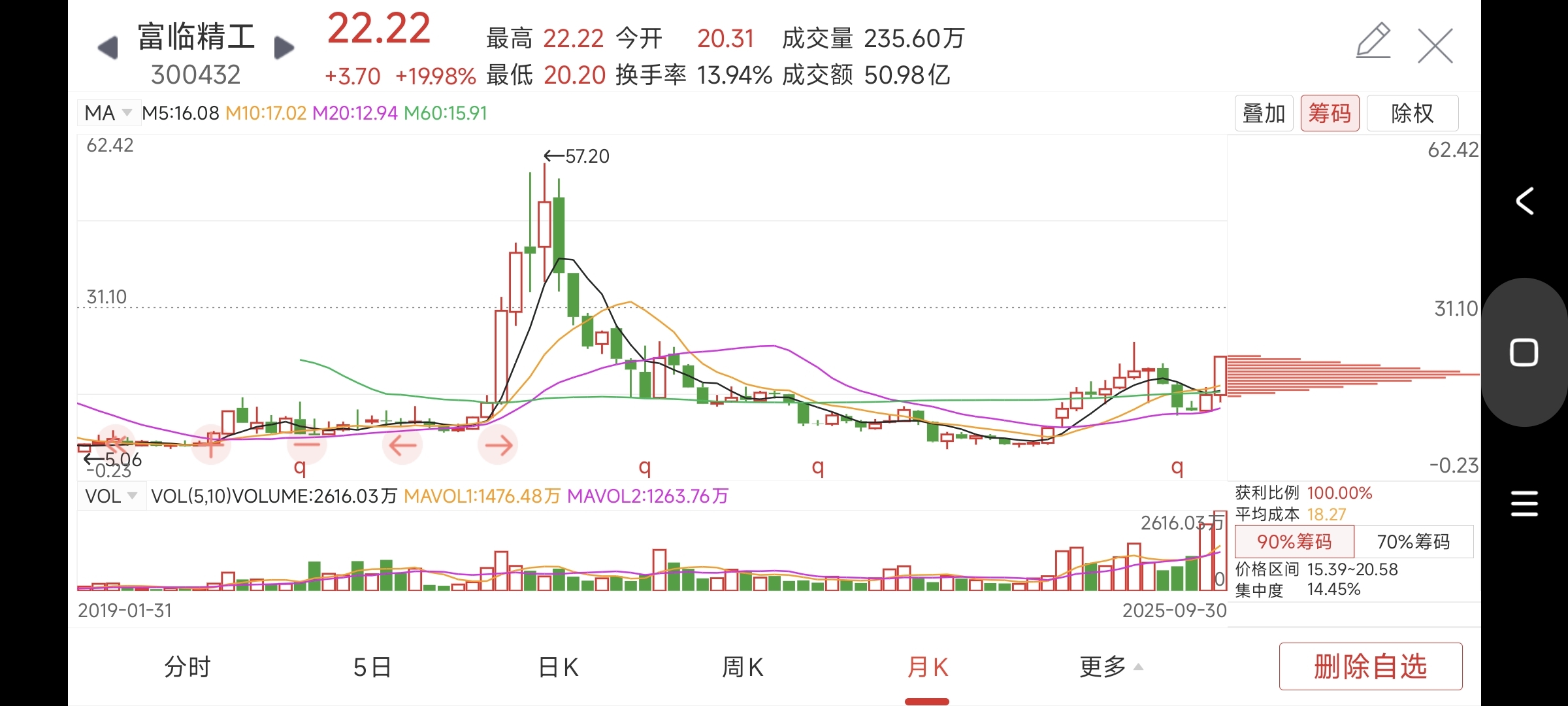 $富临精工(SZ300432)$ 愚人愚见,月线上看,小荷才露尖尖角,必有厚爱立上头。