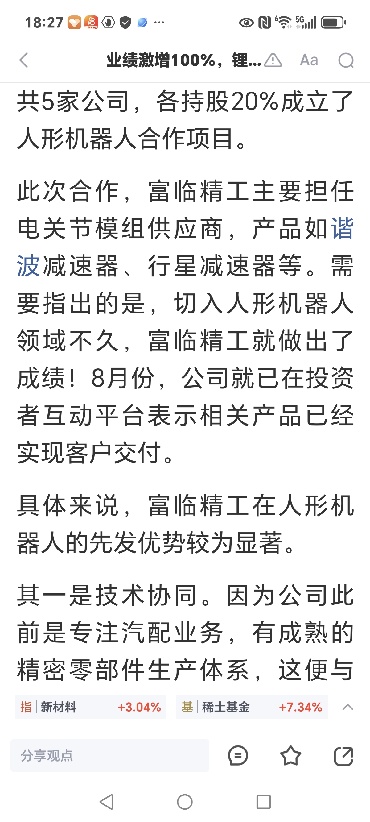 $富临精工(SZ300432)$ 富临精工:今天获利盘太多,适当回撤多正常,十月金股富临精工,名子起的真棒,与宁王合作,机器人驱动系统技术过硬,看涨,上个交易主力超大单流入3.57亿元,近三天总计流2亿多元,券商点评力推富临!股价二十一元不高